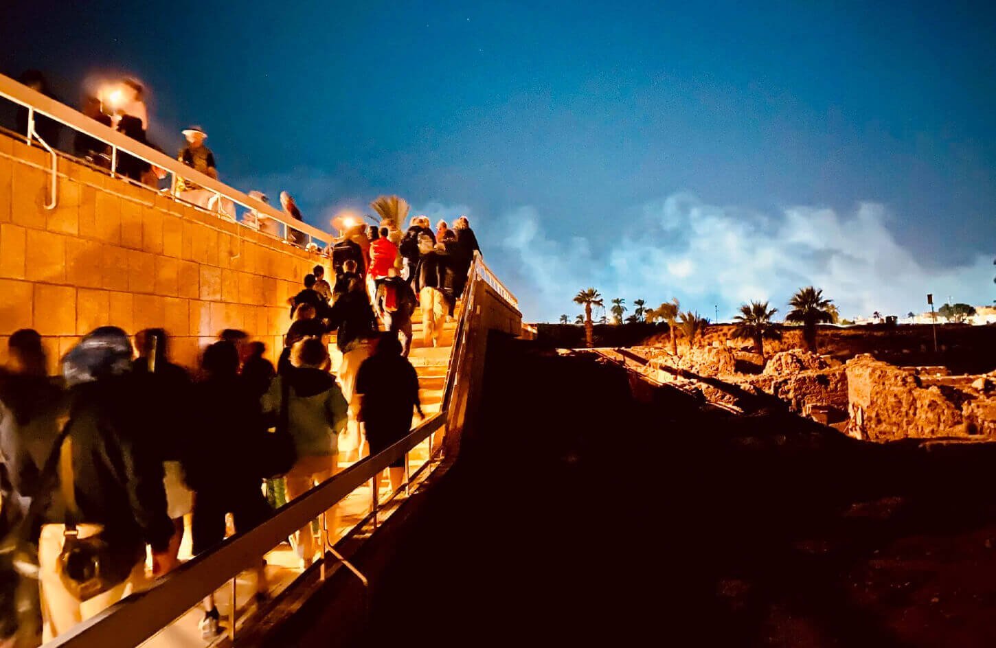 The show lasts approximately 75 minutes, beginning with a guided walk through the temple’s illuminated halls and columns.