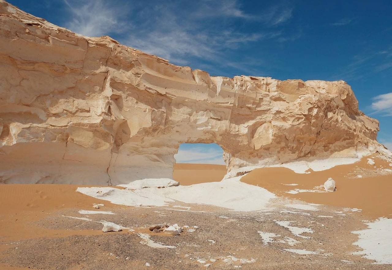 Arrive at the White Desert National Park, known for its otherworldly chalk formations shaped by centuries of wind erosion.